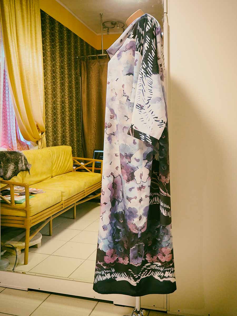Платье с цельнокройным рукавом три четверти и съемным шарфиком, выполнено из купона 100% шелк