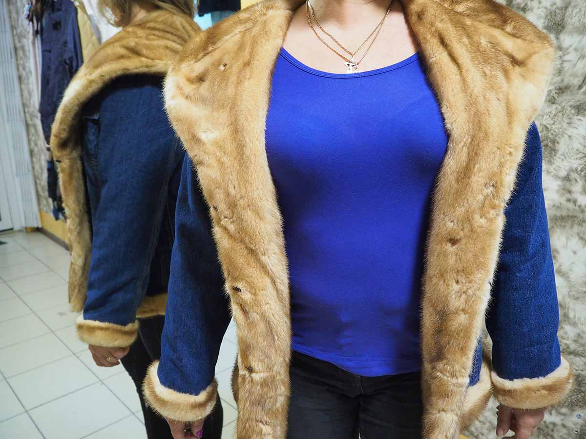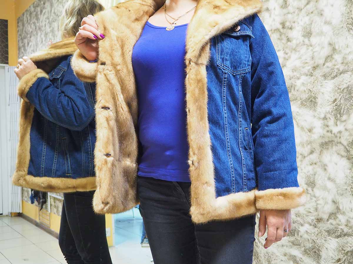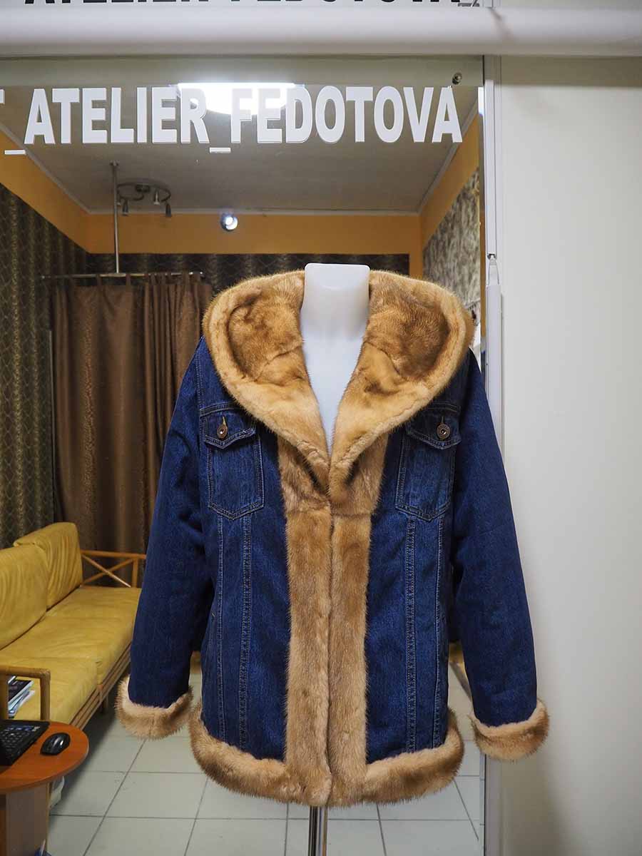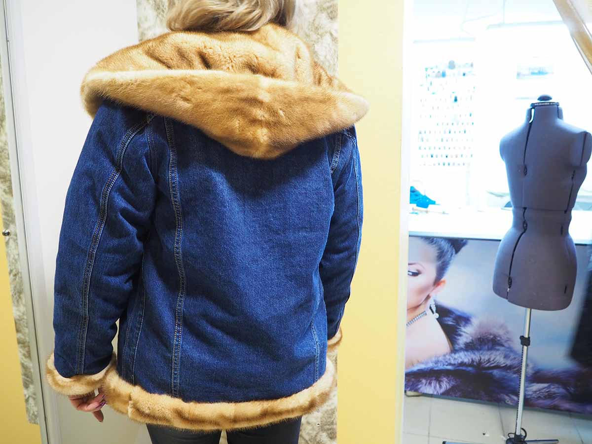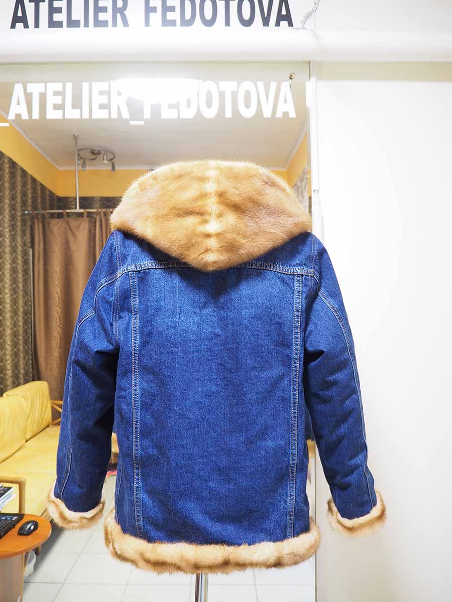 Джинсовая куртка спортивного фасона, утепленная меховой подстежкой из натуральной норки с двусторонним норковым капюшоном. Подстежка выполнена из полушубка заказчицы. Данное изделие является наглядным доказательством того, что норка, как материал, великолепно сочетается с различными тканями и фасонами разных стилей. В результате мы получили очень теплую и легкую куртку, которую комфортно носить зимой в любую погоду