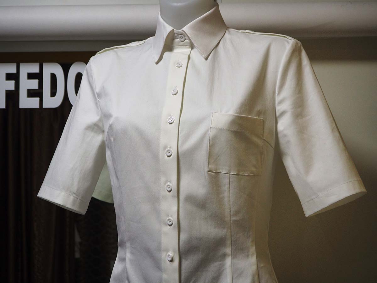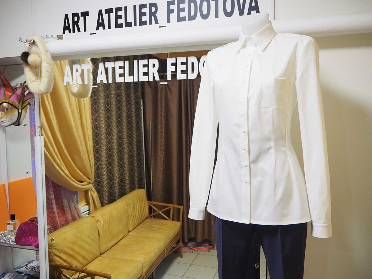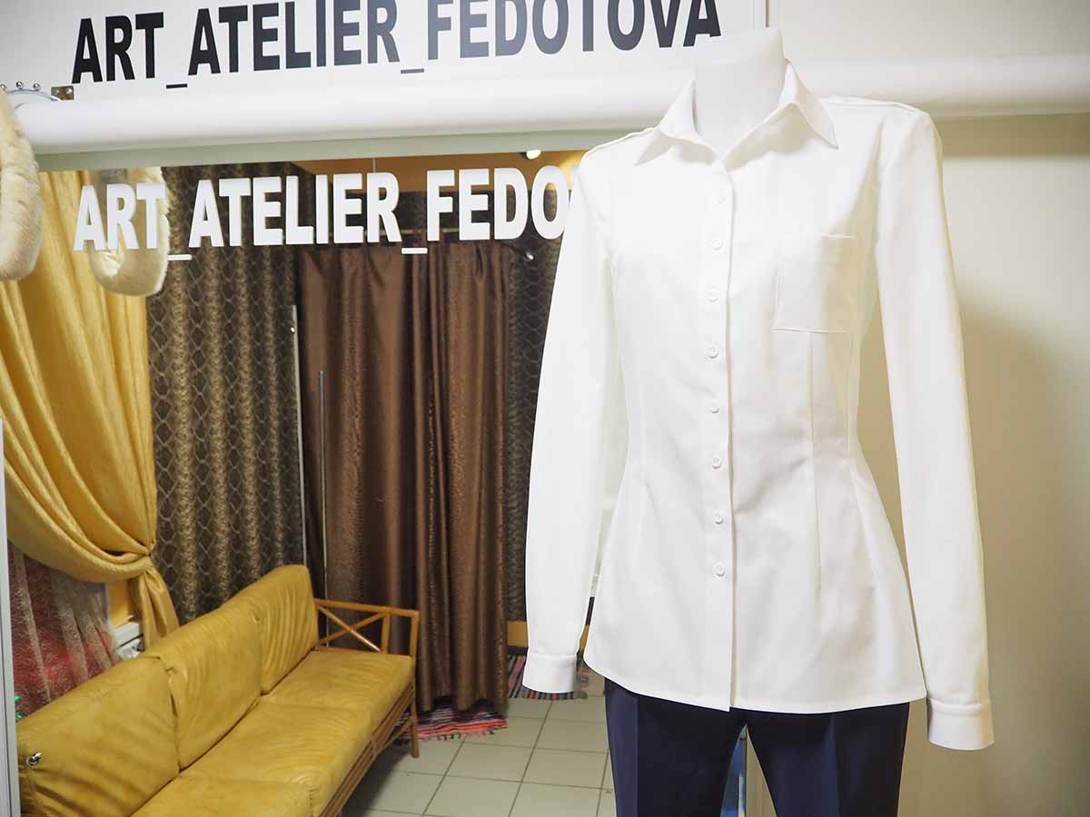 Форменный комплект для пилота авиакомпании. Две блузки и брюки выполнены согласно дресс-коду организации из высококачественных материалов заказчицы. Блузки приталенного силуэта из белого стрейчевого хлопка итальянского производства: одна с длинным рукавом, вторая – с коротким Для выделения фигуры сделаны две талиевые вытачки, рукав втачной на манжете, воротник отложной на стойке, по плечевому шву – погоны. Брюки с завышенной талией, облегающие по бедрам и слегка заужены книзу, по боковым швам классические карманы, сшиты из тонкой итальянской шерсти темно-синего цвета. Индивидуальный подход мастера в сочетании с грамотно выбранной тканью при создании для вас форменной одежды, гарантируют вам уверенность в себе и отличное настроение в любой рабочей ситуации