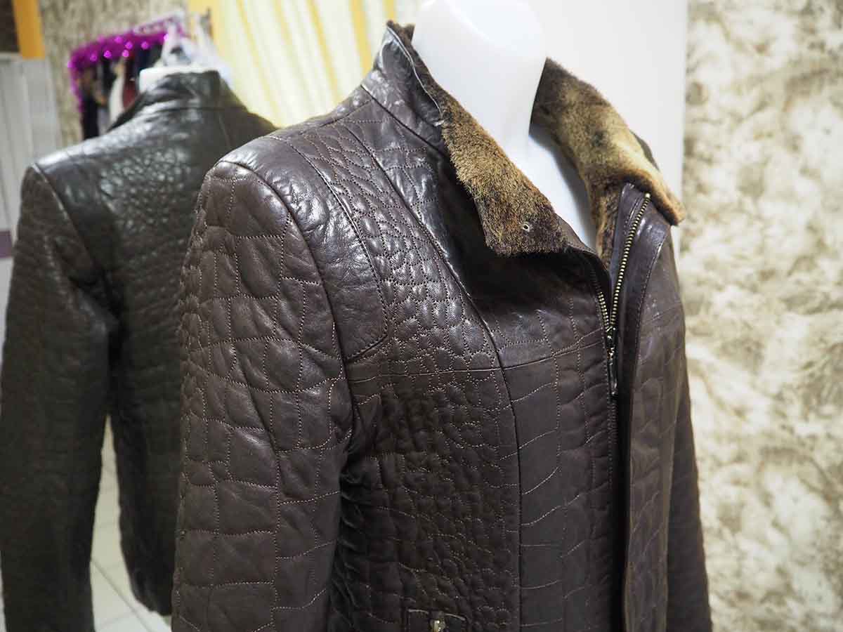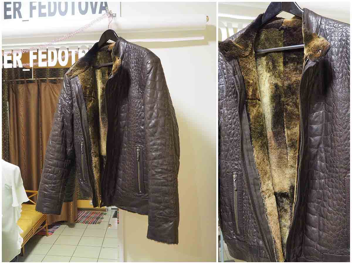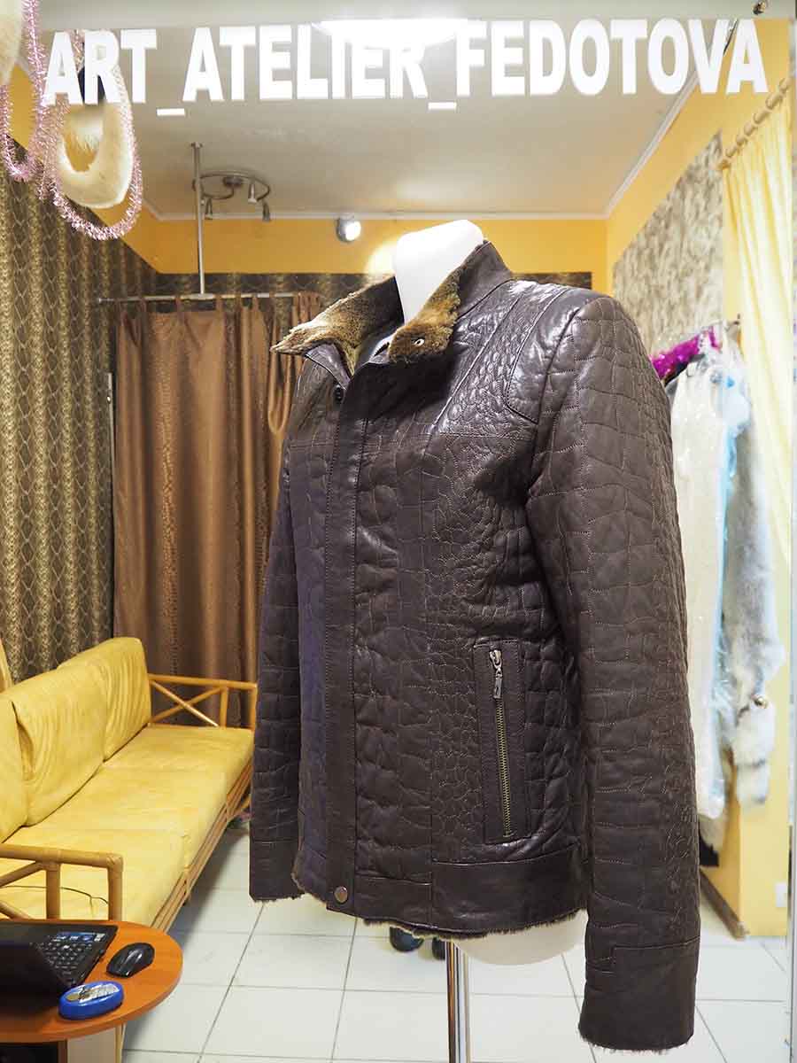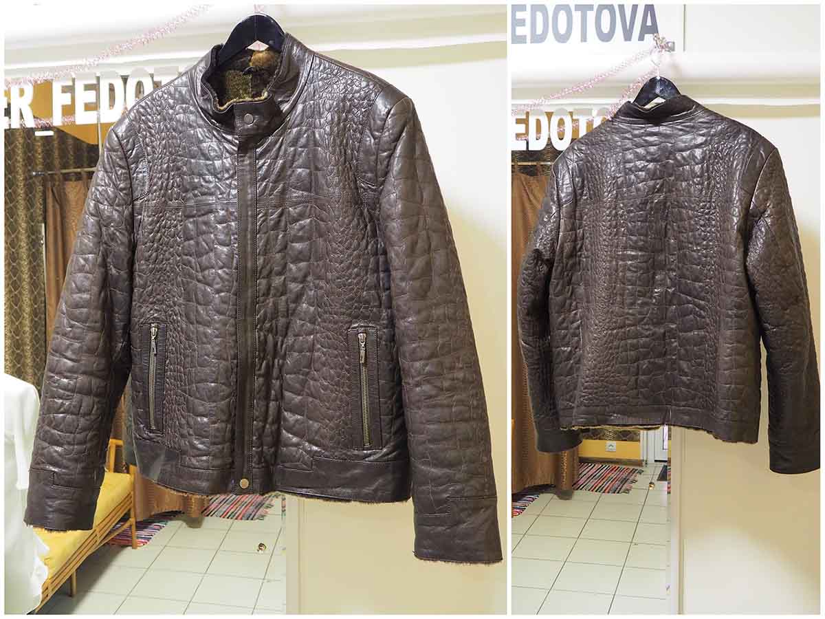 Эта кожаная курточка пример того, как мужская вещь может превратиться в предмет верхней одежды для женщины, вследствие некоторых манипуляций. А именно, сделан нагрудный рельеф, ушит и поднят рукав по окату, а по среднему и боковым швам уменьшена и слегка приталена спинка. В результате получилась добротная теплая женская куртка из натуральной овчины.