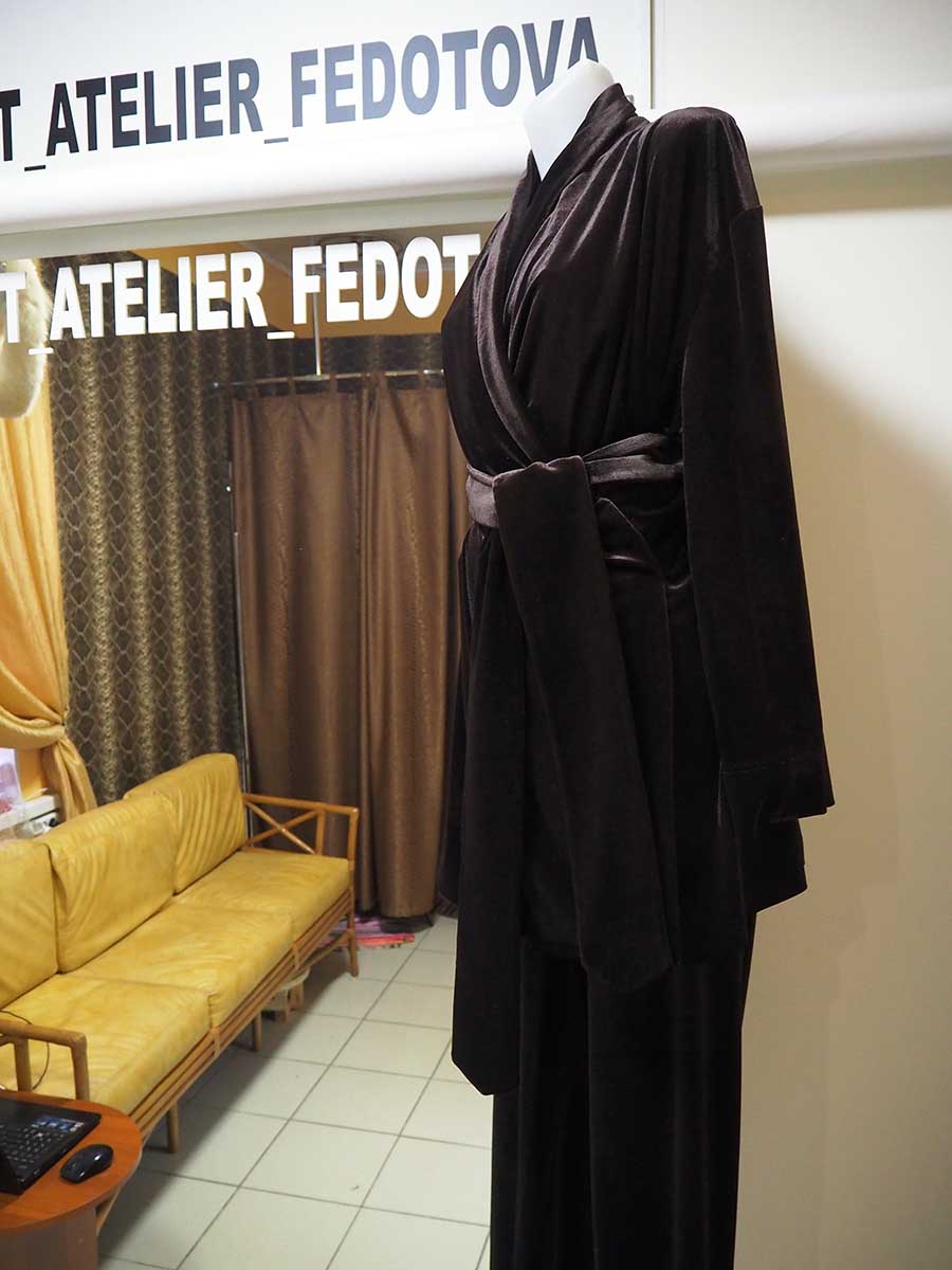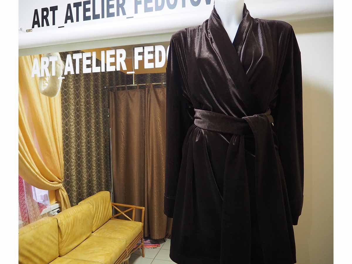 Кофта свободного кроя с запахом, вокруг талии два длинных пояса. На рукавах манжеты с декоративными кнопками для регулирования ширины рукава. Свободные брюки с поясом на резинке, внизу которых также установлены регулировочные кнопки. Универсально подходит как для летних прогулок, так и для использования дома. Выполнено из материала заказчицы