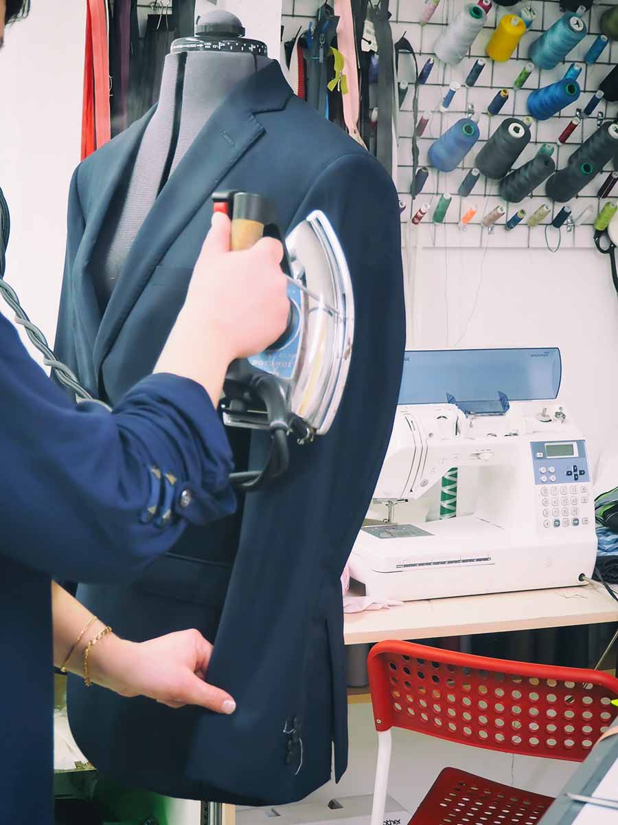 Готовим к выходу костюм от известного бренда. Выполняя подгонку или изменяя фасон, чистим и отпариваем в подарок