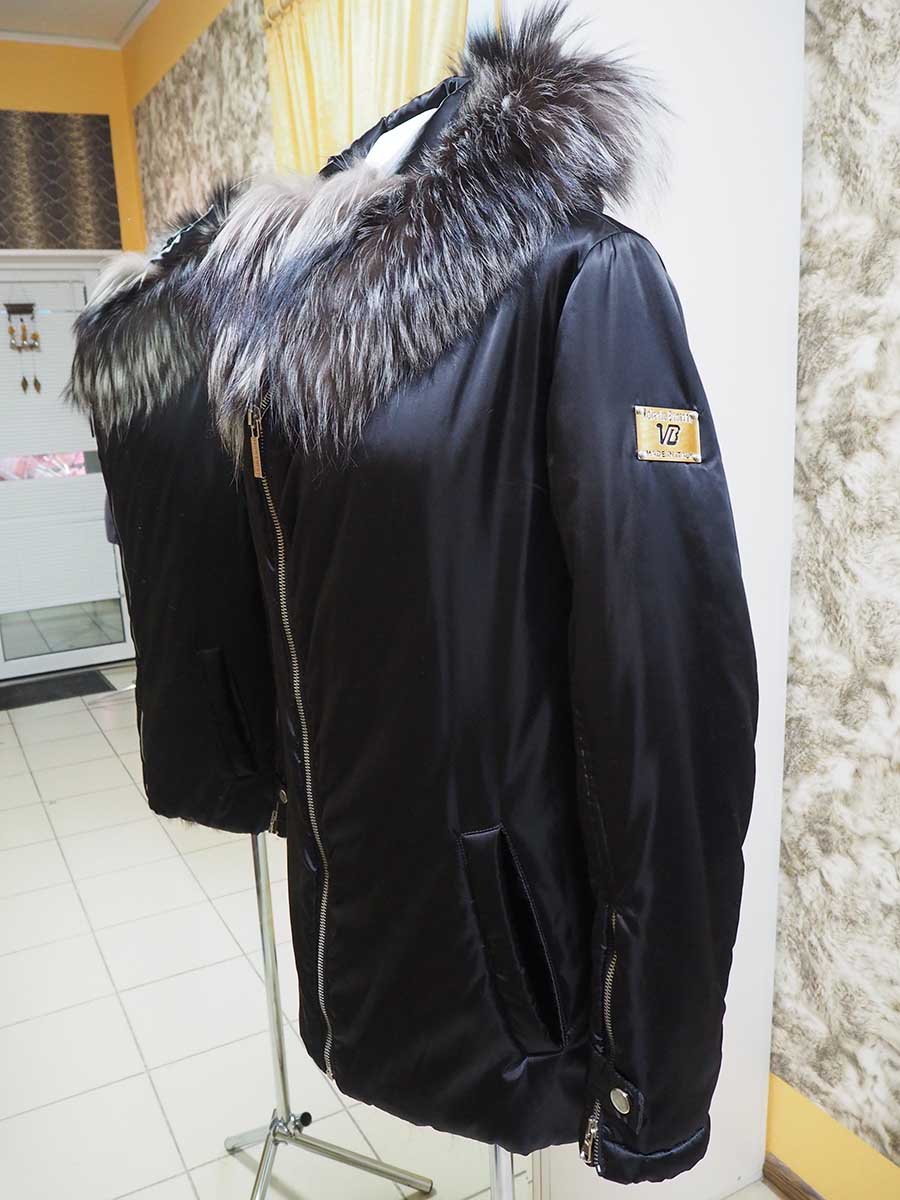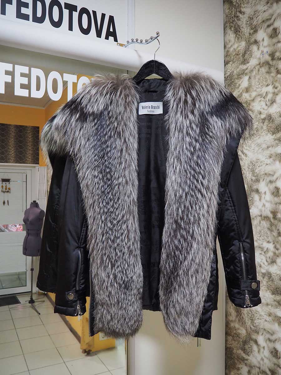 Куртка с капюшоном в результате перекроя и изменения фасона, перешита из мужской модели в женскую. Отделана натуральным мехом чернобурой лисы. Если в бутике вам понравилась какая-то вещь, но не подходит вам не только по размеру, не расстраивайтесь, подгонка одежды - это наша работа