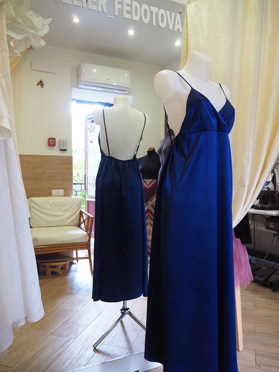 В данном случае наш мастер создал шелковый сарафан на тонких бретелях, отрезной под грудью, по спинке объемная сборка на резинке. Отлично будет сочетаться с широкополой шляпой, которую возможно заменить платком или легким шарфиком. На ногах хорошим выбором станут босоножки на низком каблуке или сандалии.