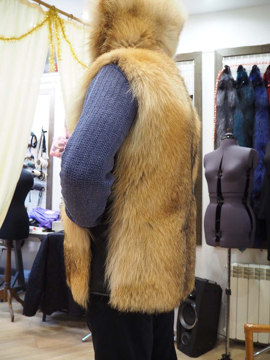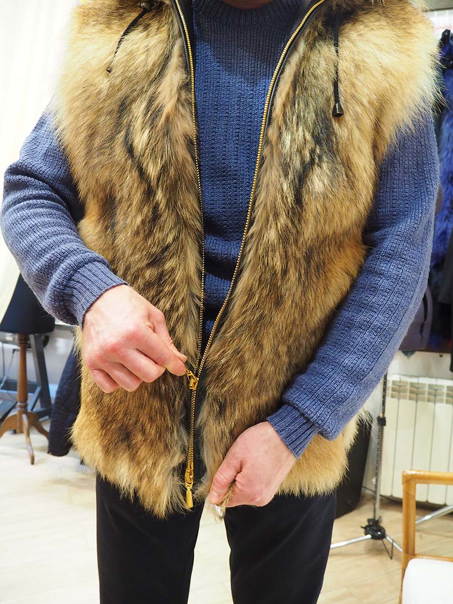 Этот меховой жилет наш мастер изготовил из охотничьих трофеев, добытых в лесах Урала. Заказчик пришел к нам с пластинами двух волков и огромным желанием иметь в своем гардеробе суровый теплый жилет, в котором можно отправиться на охоту в любой момент без оглядки на погоду.