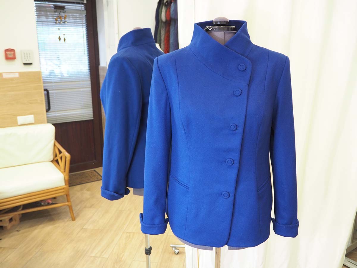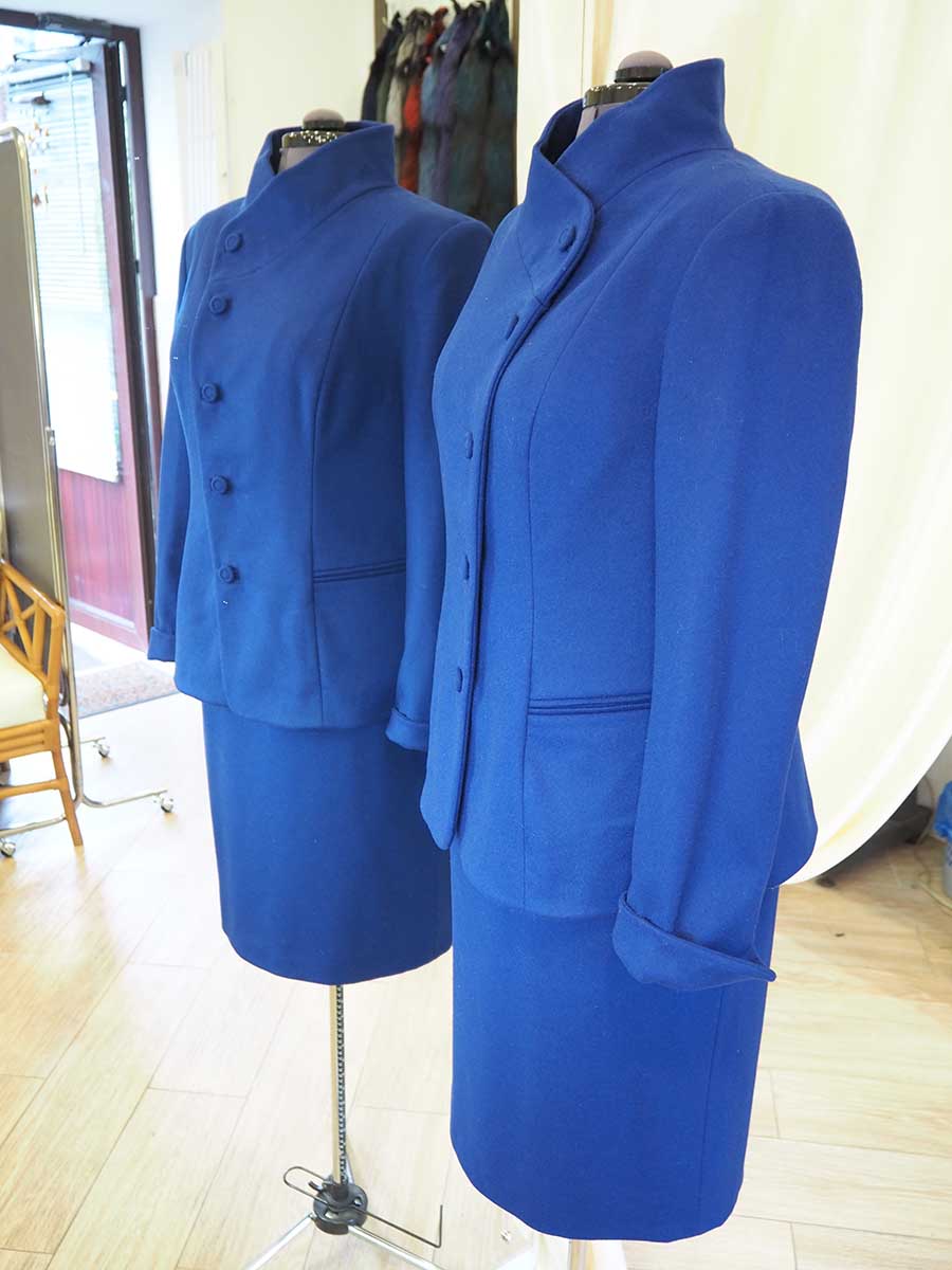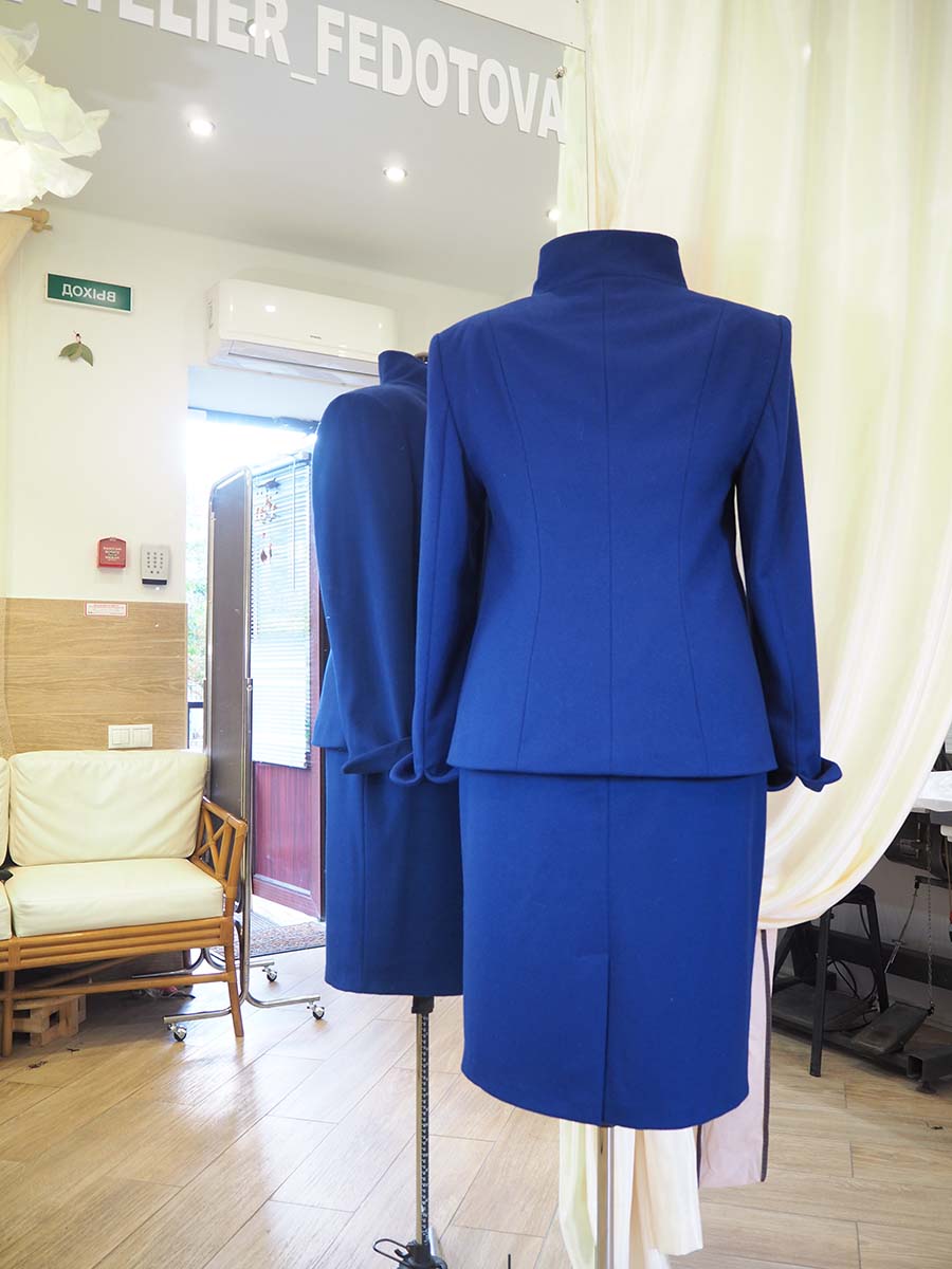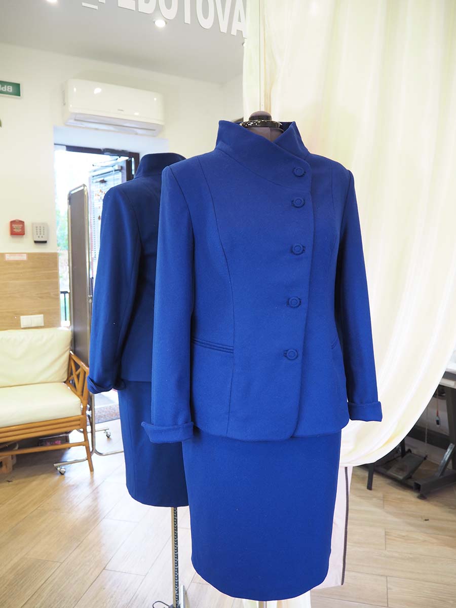 Наш мастер выполнил перекрой женского костюма из натуральной шерсти с целью уменьшения на два размера.