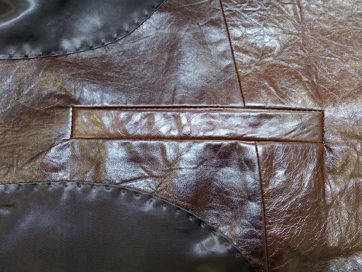 Классический мужской пиджак с ангийским воротником от нашего мастера. Изготовлены боковые карманы с клапанами и нагрудный карман "листочка". Петли для пуговиц обработаны в рамочку. Выполнено изделие из качественной натуральной кожи итальянского производства.
