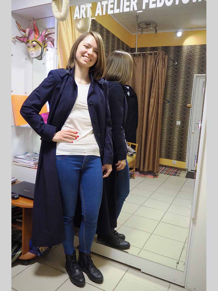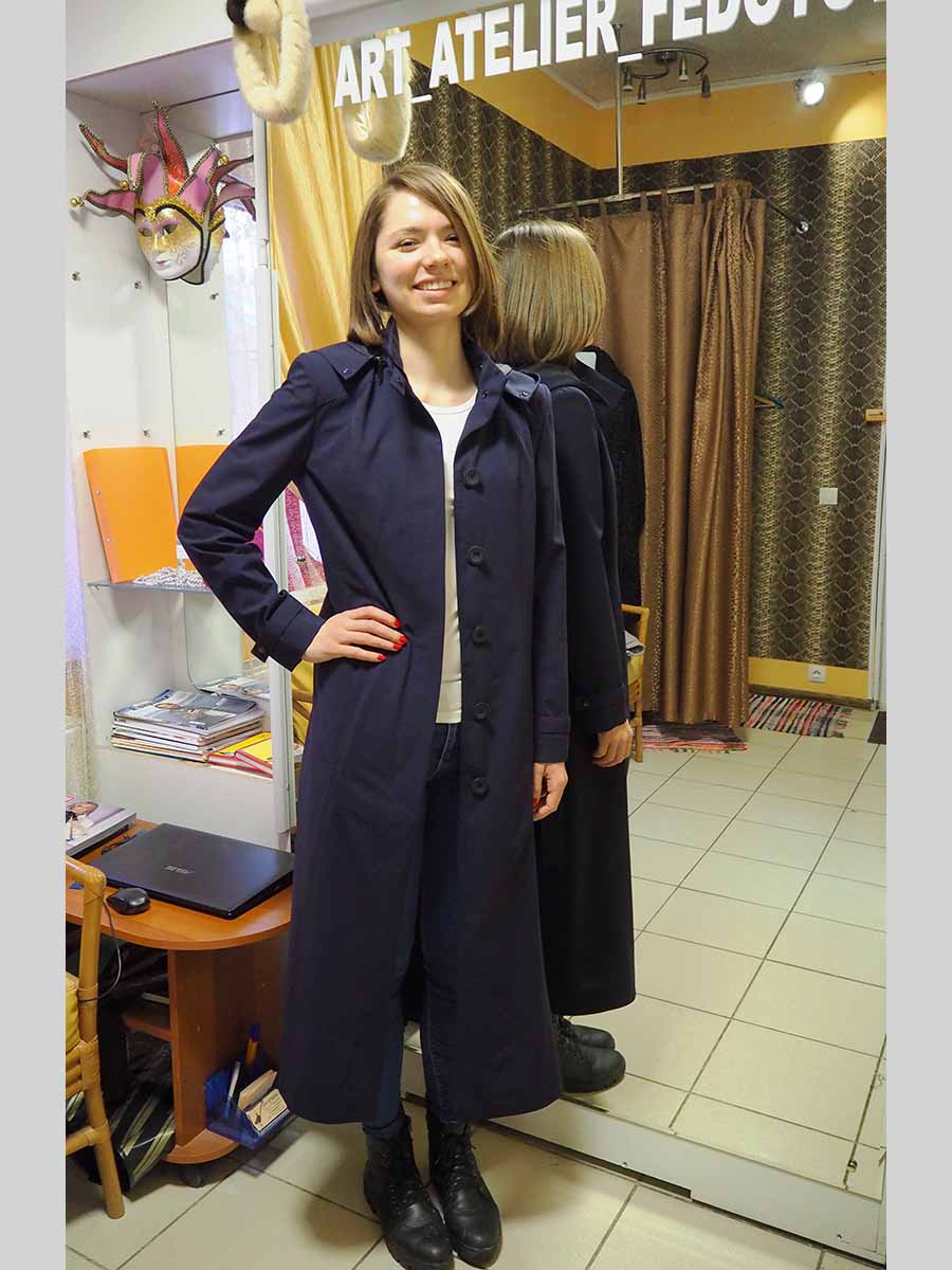 Продолжаем создавать форменную одежду для служащих авиакомпаний Данный трэнч изготовлен из очень качественной итальянской плащевки, состав которой – 100% шерсть, обработанная ветро- и влагозащитной пропиткой. При раскрое учитывались все детали, необходимые для его комфортного использования в любую погоду Изделие имеет свободный силуэт, расклешенный книзу Рельефы по полочке и по спинке, в рельефных швах карманы, кокетка цельнокройная, все швы отстрочены Плащ на потайной (супатной) застежке с поясом Воротник - стойка с застежкой для защиты от непогоды, капюшон отстегивается, на рукавах декоративные паты на кнопках, по спинке - шлица. Девушки, владеющие такой профессией, должны обладать лучшими вещами в своем гардеробе