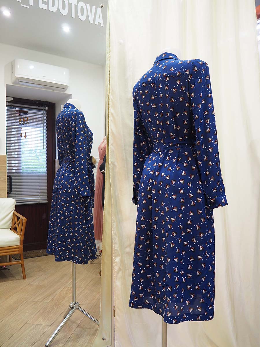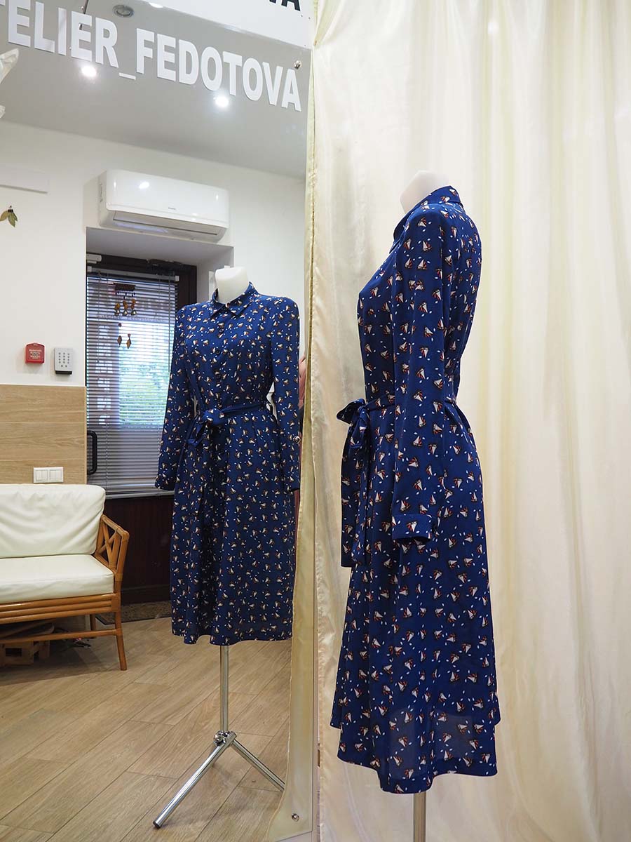 Вот именно такой мягкий, нежный, с неповторимым блеском шелк мы использовали при создании этого изделия. Перед вами платье-халат на пуговицах с рубашечным воротником, по боковым швам два внутренних кармана. Талия подчеркнута изящным поясом. Данная модель имеет слегка укороченное плечо, что в настоящее время находится в некотором тренде.