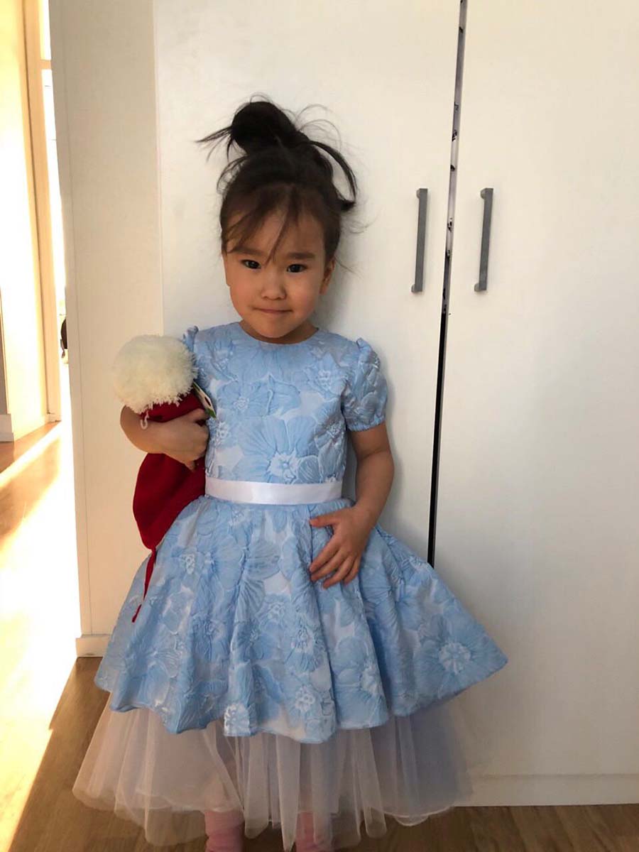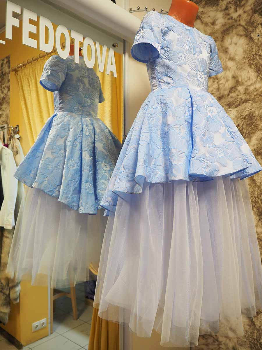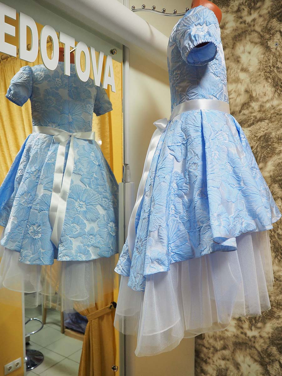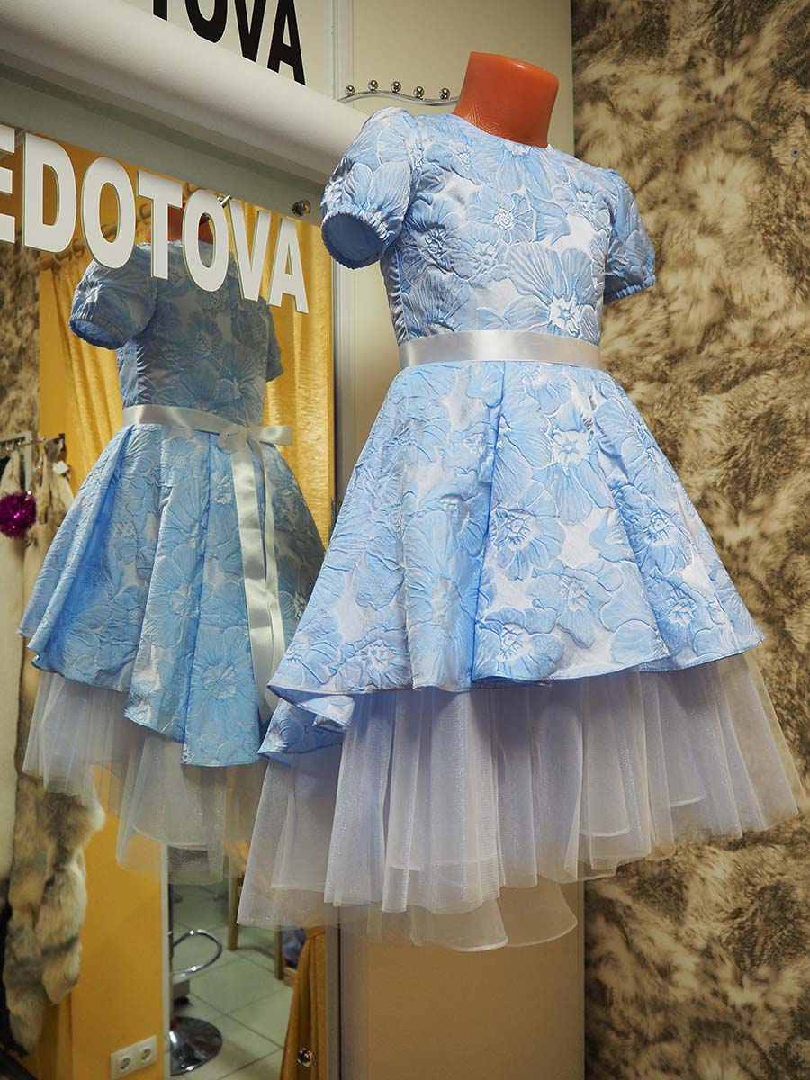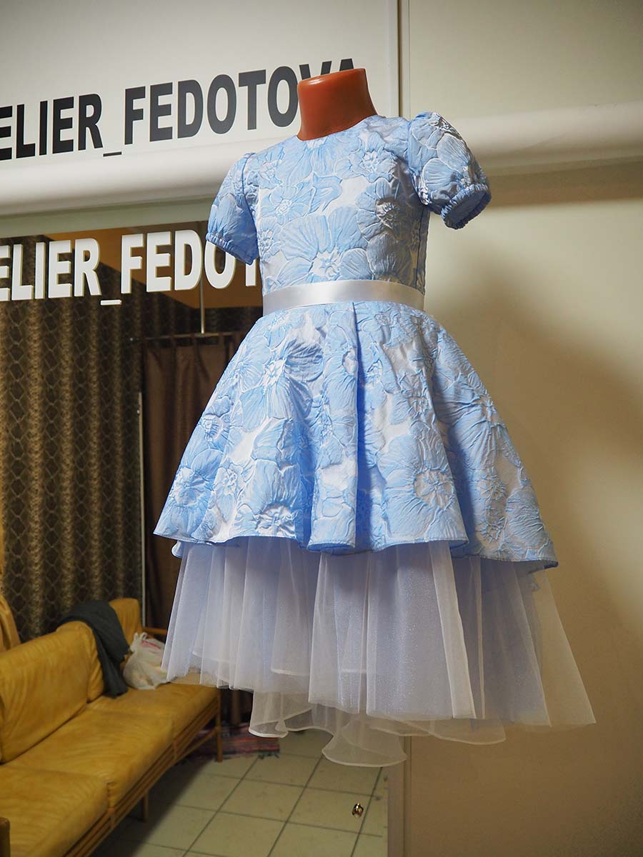 Платье на девочку 4-х лет, отрезное по талии, рукав - фонарик, по спинке молния, пышная многослойная юбочка из органзы и фатина, для комфорта лиф платья обработан шелковой подкладкой Выполнено из жаккардового габардина с отделкой атласным поясом Заказ приняли дистанционно, снимая мерки онлайн, что особенно важно для родителей, которые ценят свое время и умеют расставлять приоритеты при выборе мастера