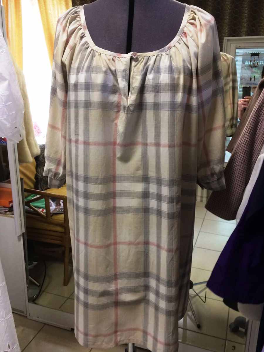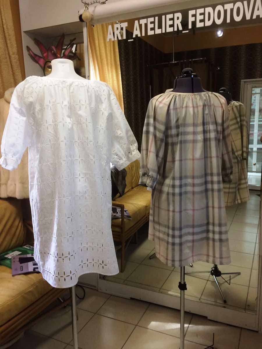 Платье-туника со сборками по горловине, рукав на манжете. Белая туника выполнена из тонкого хлопчатобумажного шитья. Платье в клетку пошито из итальянского коллекционного хлопка