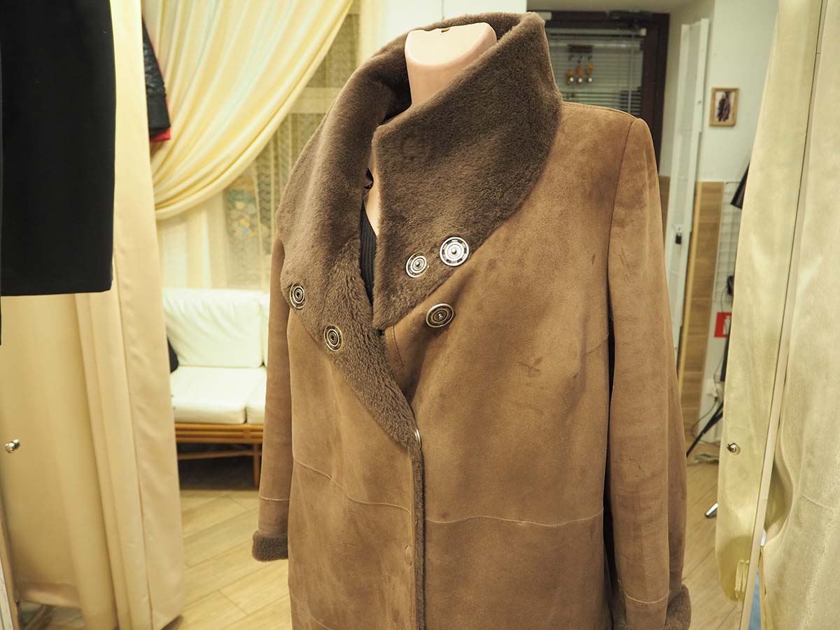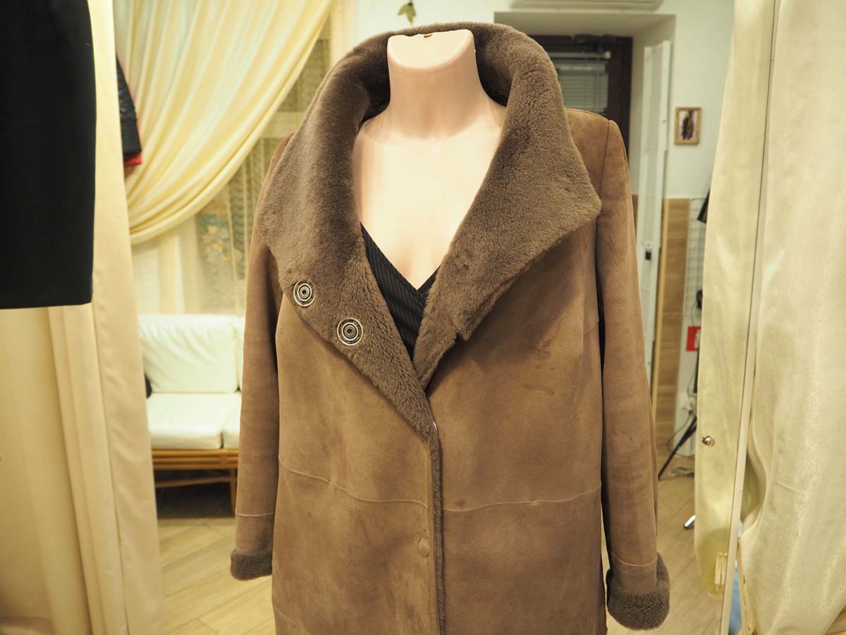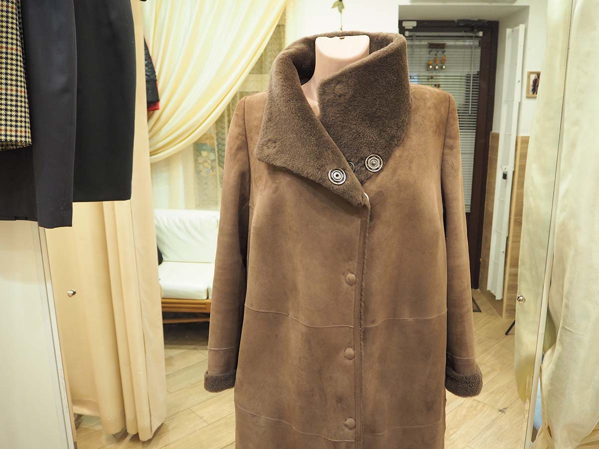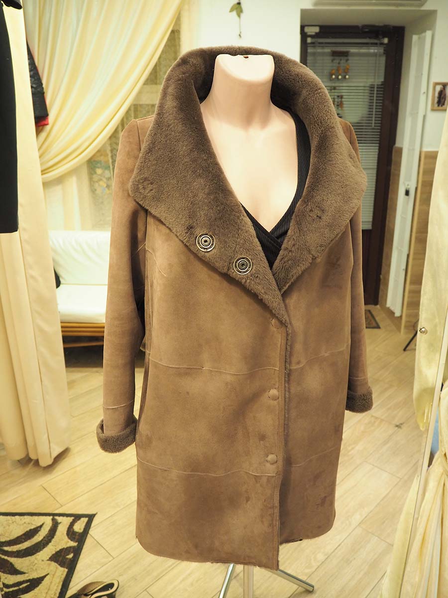 Дубленка сделана из теплого натурального материала хорошего качества, но не подходила своей обладательнице по размеру, она обратилась к нам и мастер решил проблему.