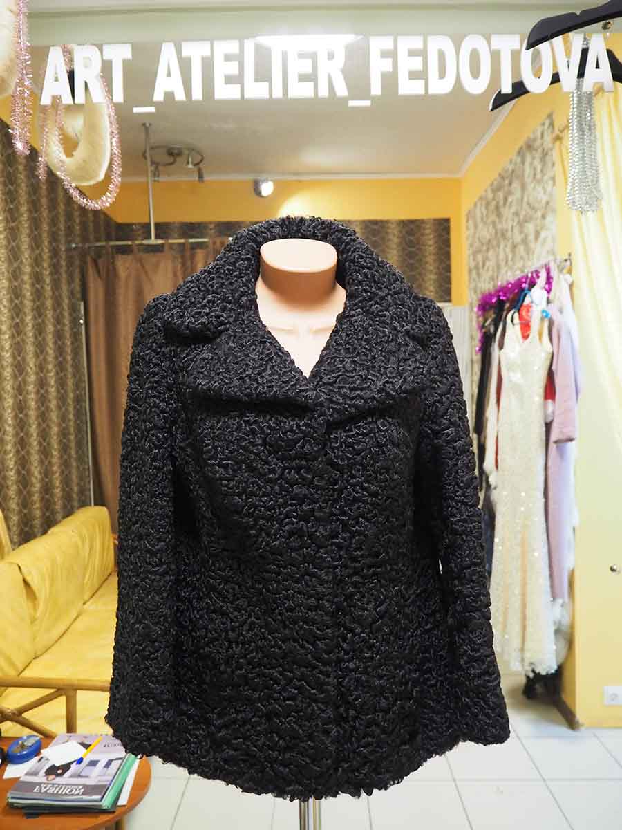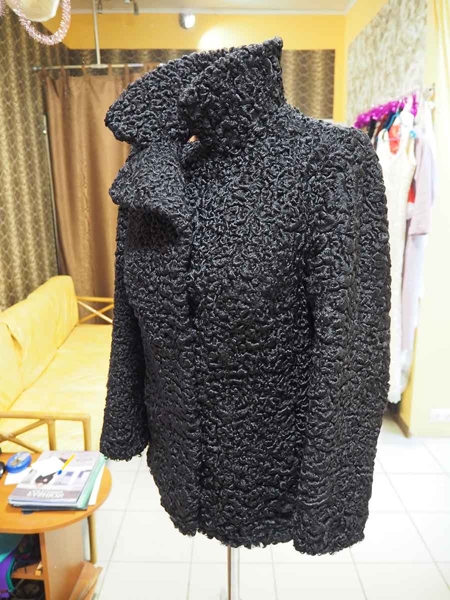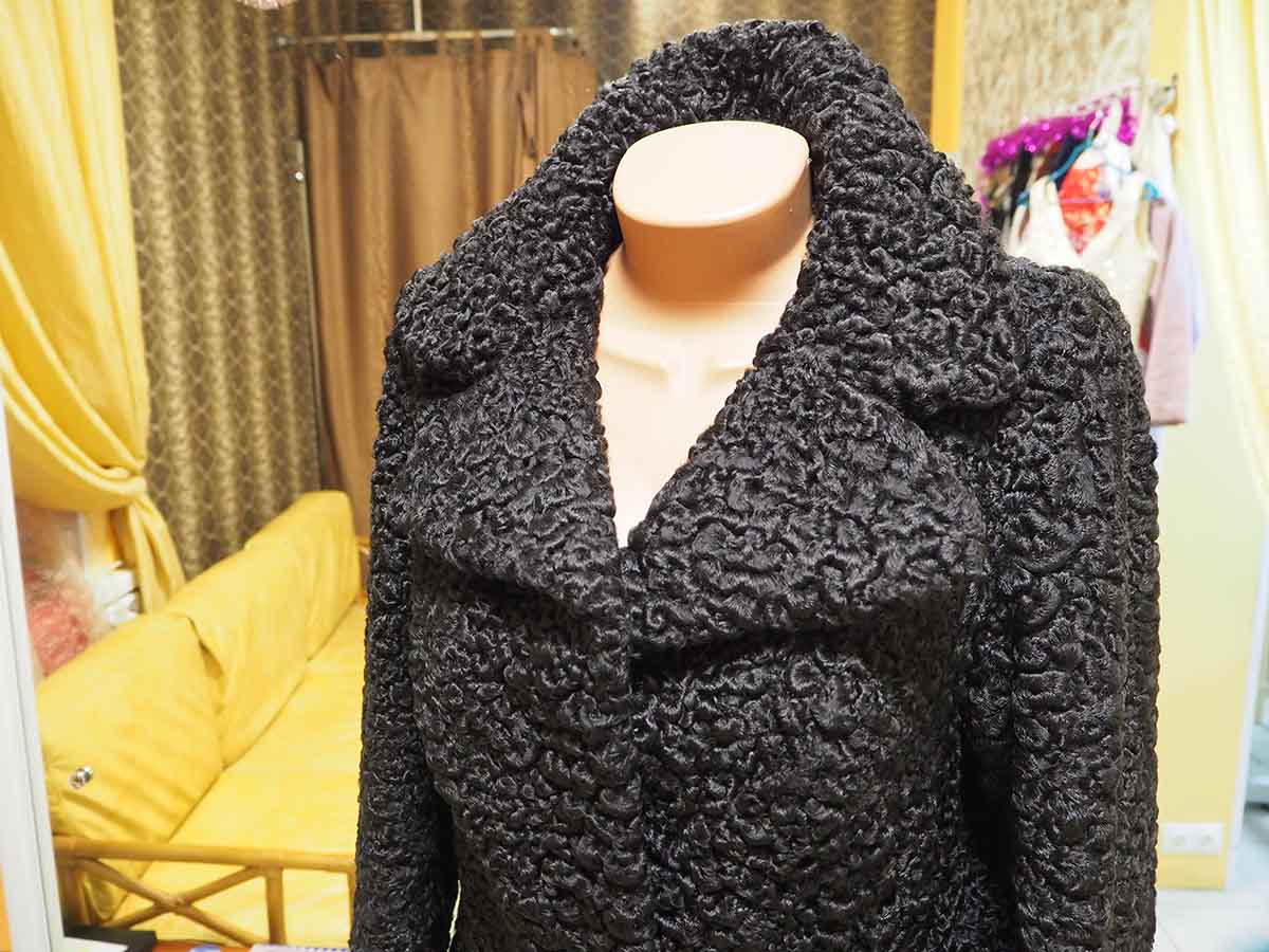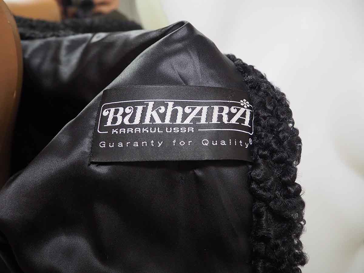 Полушубок из бухарского каракуля фасона «бушлат» после частичного перекроя и уменьшения размера. Узбекский каракуль является самым древним из трех видов, имеющихся на сегодня, именно там зародилось разведение каракульской овцы, а в бухаре производится самый красивый. Неповторимый узор бухарского каракуля отличается от других плотными бобовыми завитками. Не зря бренд «BUHARA KARAKUL» пользуется огромным спросом еще с советских времен, его популярность в начале 2000-х возрастает на модных подиумах Европы. Благодаря своей редкости и интересной фактуре бухарский каракуль используют модельеры самых известных домов для создания эксклюзивных и уникальных изделий.