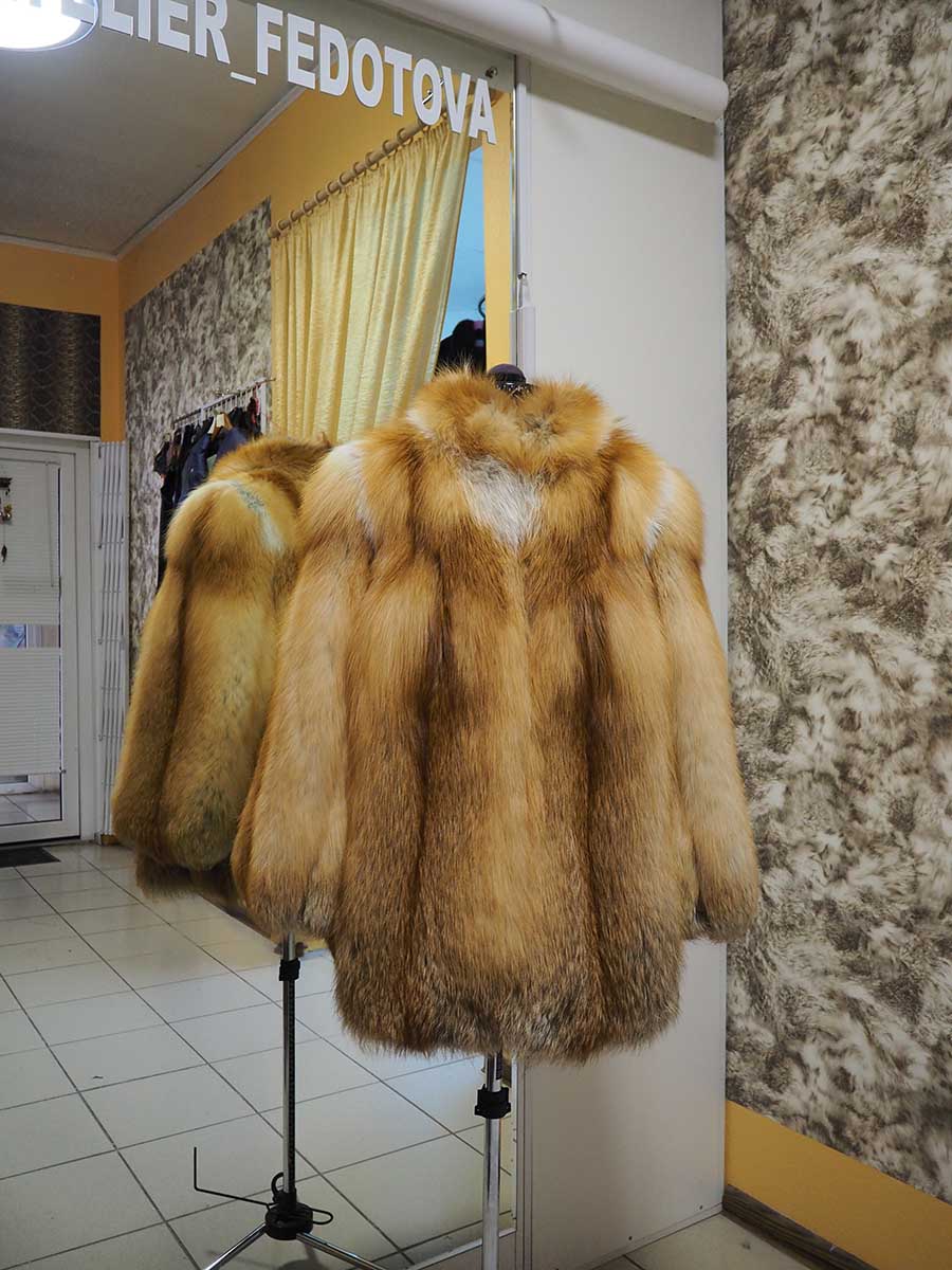 Полушубок из меха рыжей лисы. Фасон имеет легкий клеш по низу и по рукаву, воротник стойка. Этот длинноворсный мех имеет густую подпушь, изделия из него очень теплые и идеально защитят от мороза и непогоды. Кроме того, чувственная и яркая шубка непременно будет усиливать энергетику своей обладательницы, что добавит неповторимости и очарования. Выполнено из меха заказчика