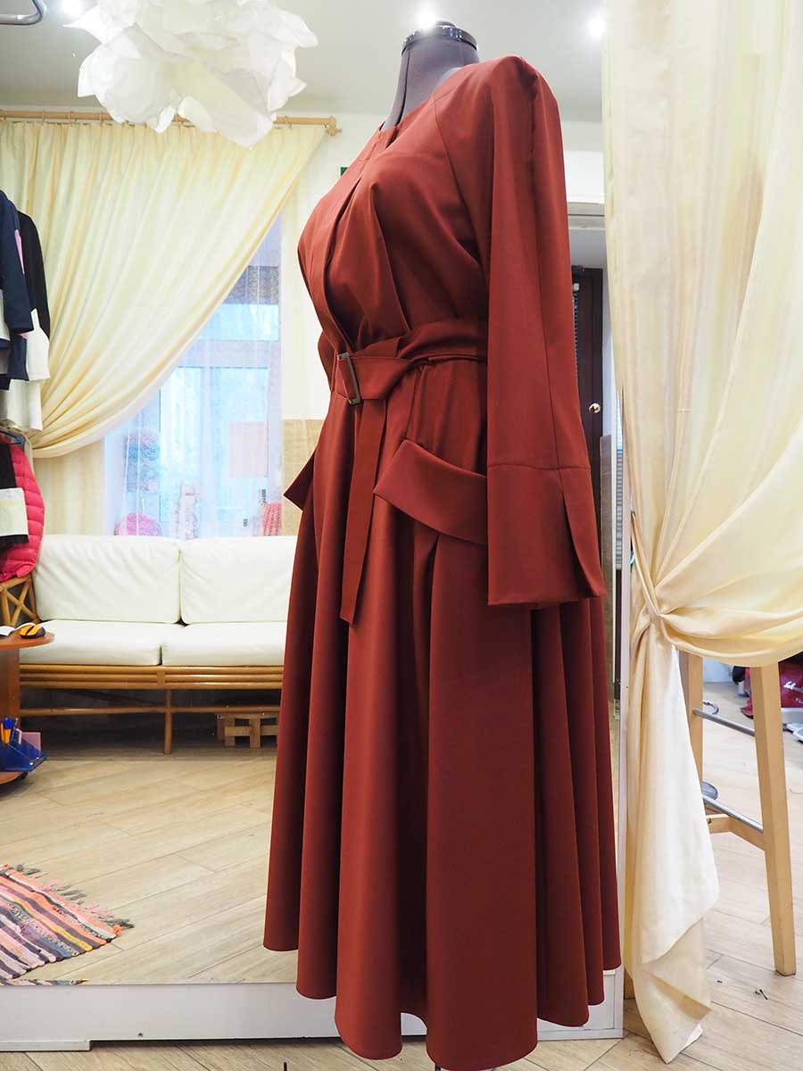 Заказчица пришла к нам с качественным материалом и желанием пошить платье для повседневного использования. Совместно с мастером, поглядывая в модный журнал, выбрали желаемую модель и согласовали сроки изготовления.