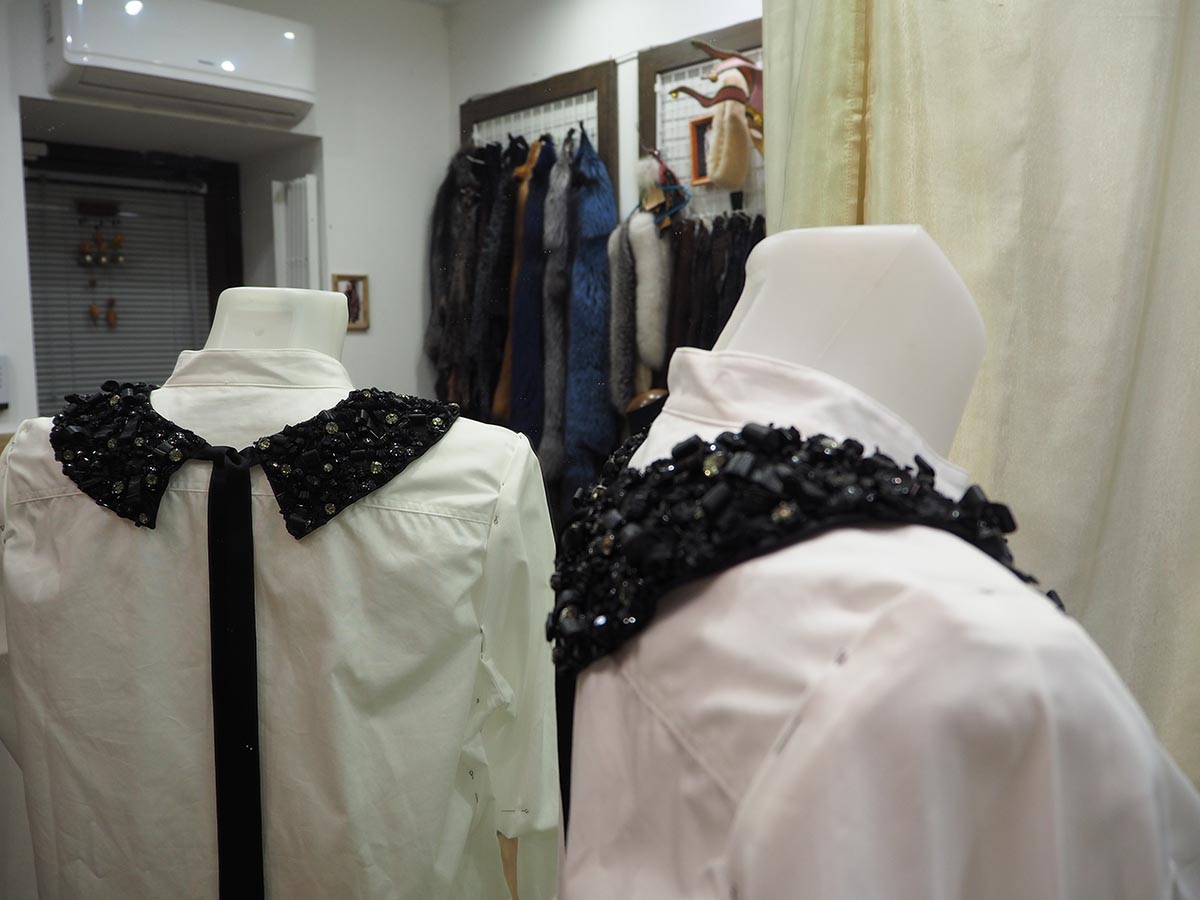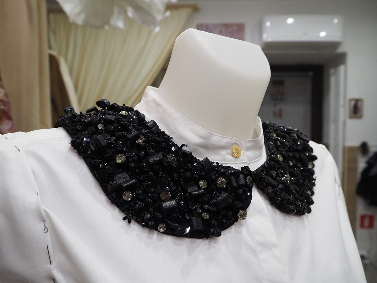 Перед вами воротник на шелковой основе с ручной вышивкой от нашего мастера. Расшит бисером, стразами, пайетками, стеклярусом и кожаными жгутиками, завязывается на шелковые ленты. Может являться своеобразной маской для вещей, превращая повседневную вещь в незаурядную и модную, а вызывающий наряд сделает более строгим и сдержанным.