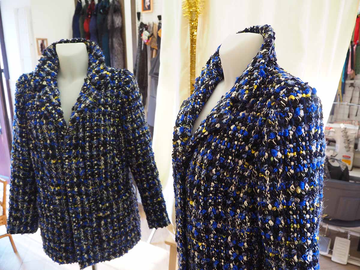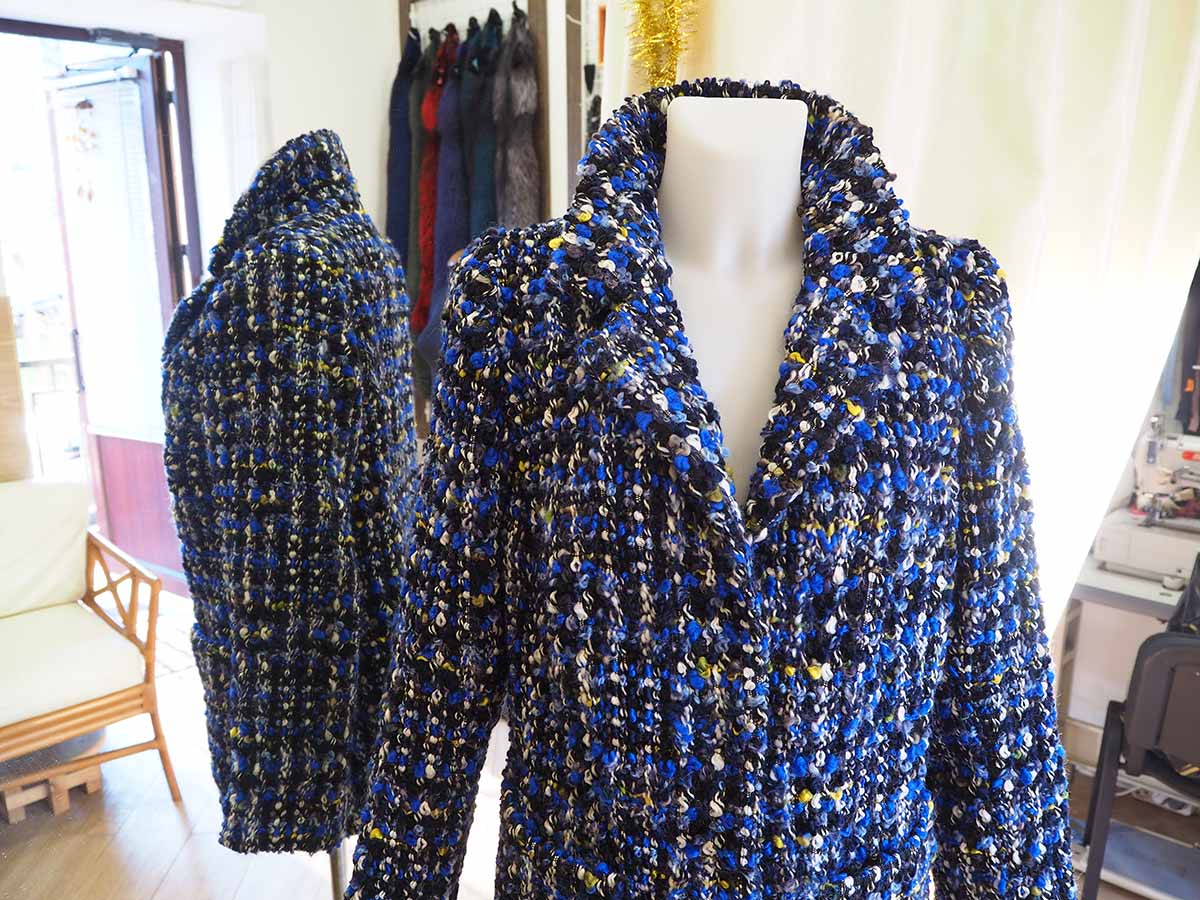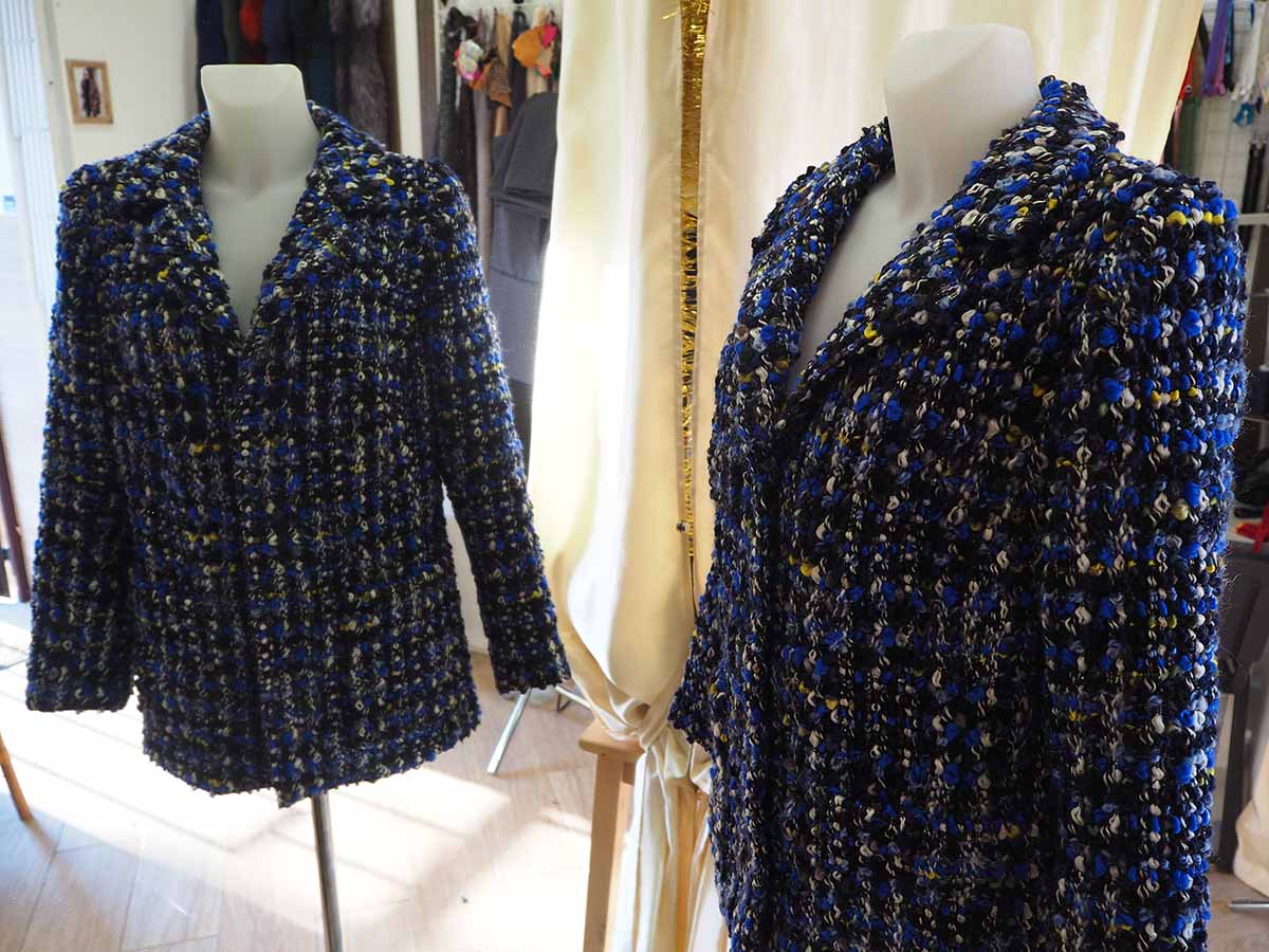 Женский жакет прилегающего силуэта с английским воротником. Ворот – это единственное отклонение от классической модели Шанель, которое мы позволили по желанию заказчицы, «классика» обычно его не имеет. Рукав прямой втачной, по полочке два накладных кармана, застежка на кнопках.