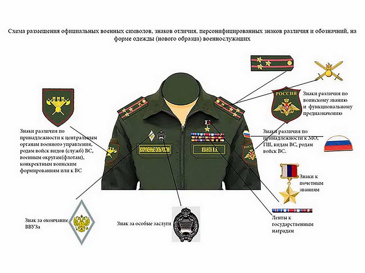 Расположение нашивок и шевронов на военной форме РФ подчинено особым правилам и регламентировано приказом, который подписал министр обороны Сергей Шойгу. Поэтому, принимая заказы от людей, которые своей профессией выбрали службу отечеству, мы понимаем, насколько это ответственно, но при этом ощущаем сопричастность с их важным делом.