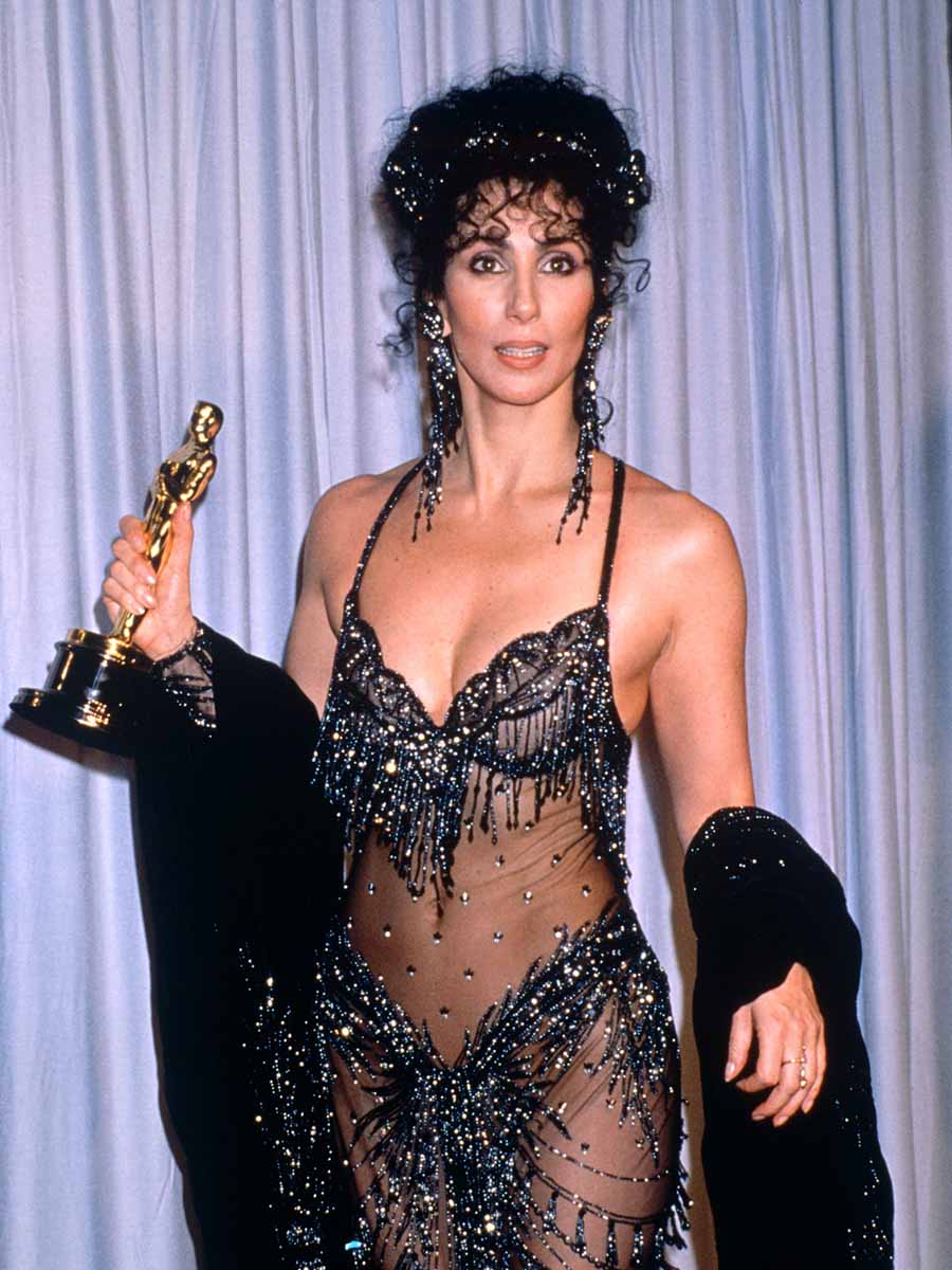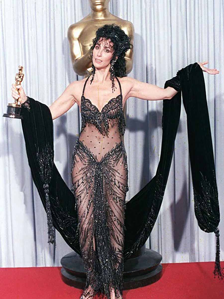 В 1988 году Шер подошла к сцене , где ей должны были вручить Оскар за лучшую женскую роль в романтической комедии «Власть луны». Под нежную, бесхитростную песню Гарри Уоррена «Это любовь» актриса продемонстрировала голливудской публике свой донельзя откровенный наряд. Потрясенные до глубины души зрители увидели платье, представляющее собой прозрачную блестящую ткань с бахромой, накинутую на голое тело Шер.