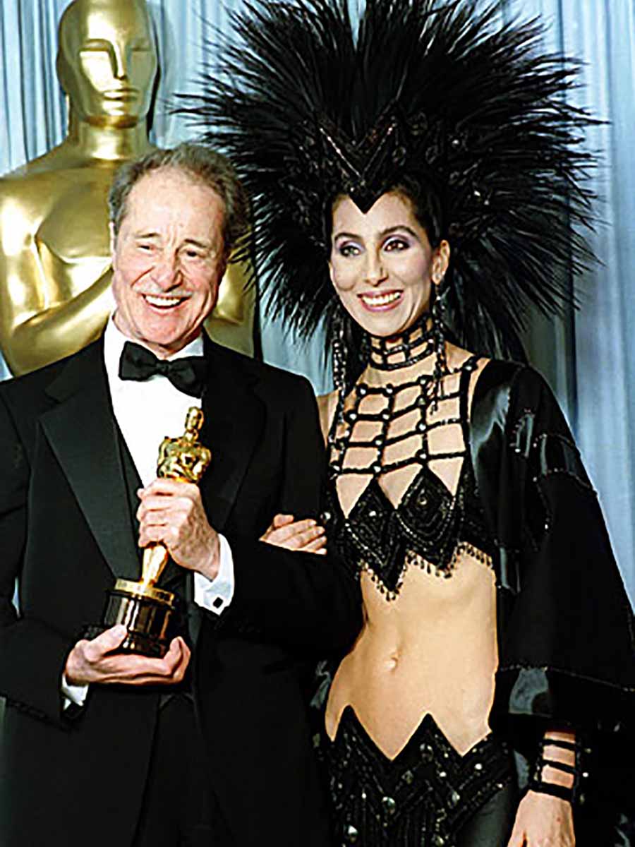 Маки, или «султан блесток», как его называют, и раньше шил для актрисы платья. Двумя годами ранее она пришла на церемонию вручения «Оскара» в другом примечательном наряде, сразу возбудившем всеобщий интерес. На Шер были обтягивающие брюки, блестящая набедренная повязка и сапоги до колен, а на голове возвышалась огромная прическа. Говоря о своем костюме, актриса пошутила: «Как видите, я все-таки получила брошюру Академии киноискусств , где объясняется, как должна одеваться серьезная актриса…»