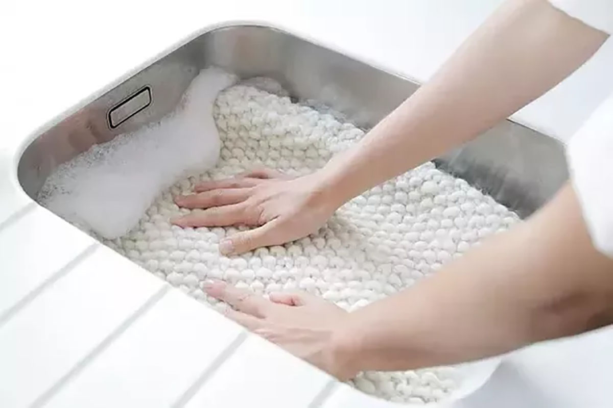 Некоторые ткани, такие как кашемир, лучше очищаются вручную. Кашемировый трикотаж нужно обрабатывать в холодной воде с применением детского шампуня для оптимальной мягкости, в нем минимальное содержание химических веществ. Доставать из воды мокрое кашемировое изделие следует в свернутом состоянии, чтобы оно не вытягивалось. Для быстрого удаления лишней жидкости можно использовать салфетку, или положите вещь на сухое полотенце и сверните в рулон для избежания образования сгибов на ткани. Не следует кашемир ни на чем развешивать, в горизонтальном положении эта ткань высохнет без повреждений. Обязательной чистки он требует перед хранением, так как парфюмерные ароматы, запах пищи, дезодоранта или табачного дыма привлекают мотыльков.